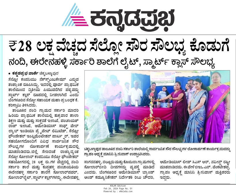 SELCO inaugurated Solar-powered smart classes at the Government Higher Primary School in Nandi village , Chikkaballapur