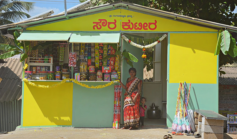 ஹிரியூர் தாலுகாவில் உள்ள ஒரு மளிகைக் கடையில் சூரிய சக்தியில் இயங்கும் நகல் இயந்திரம்.