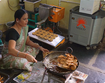 SELCO கிராமப்புற தொழில்முனைவோர் மற்றும் சிறு வணிகங்களுக்கு அவர்களின் தேவைகளுக்கு ஏற்ப மலிவு, நம்பகமான, சுத்தமான எரிசக்தி தீர்வுகளை வழங்குகிறது.
